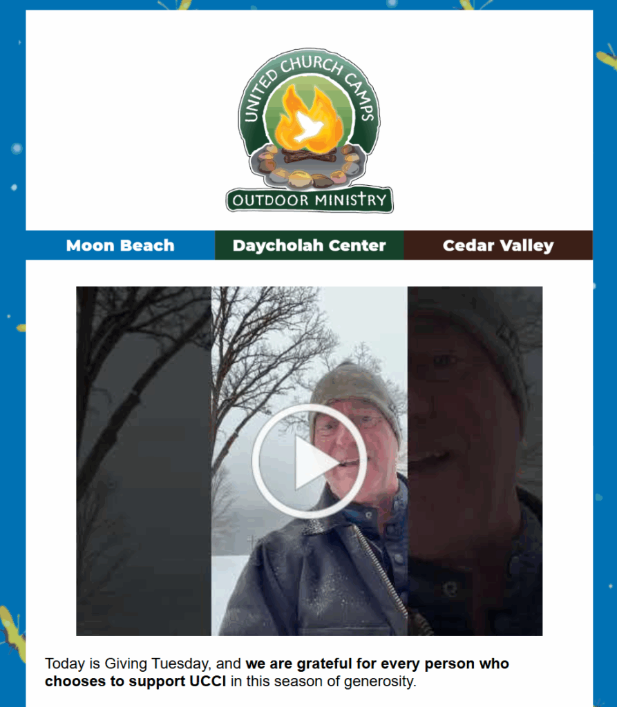 Ignite the Spirit of Generosity Rooted in a legacy of over six decades, Moon Beach, Daycholah Center, and Cedar Valley have a long history of providing meaningful camp events, retreats,